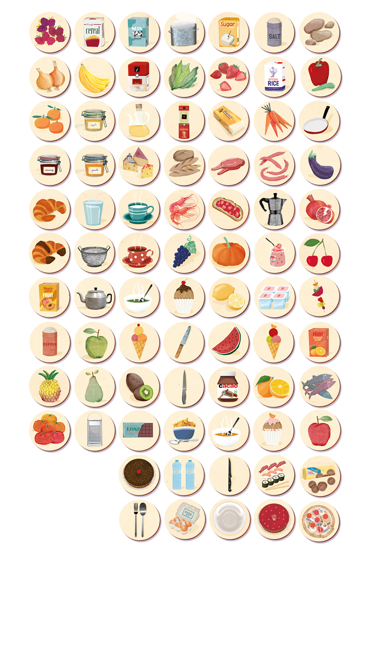 - المكونات: ورقة كرتونية بموضوع الطهي مع عشرة فتحات مقطوعة، مكونات وأدوات مطبخ صغيرة للبحث عنها.
