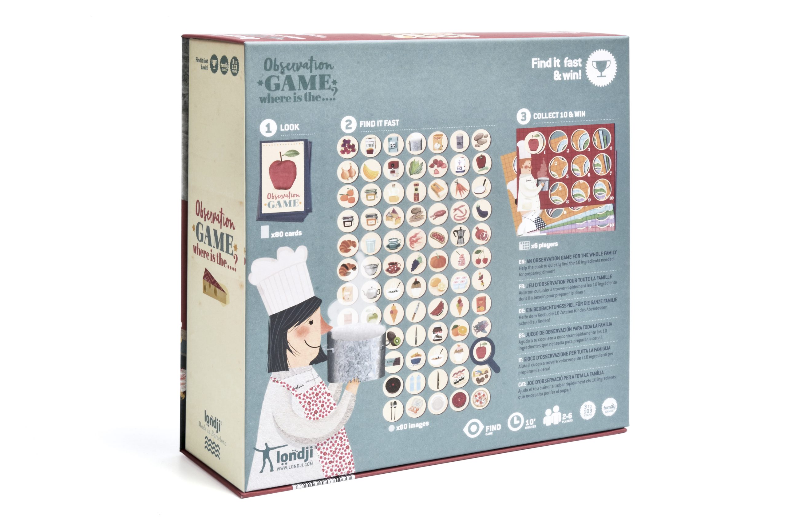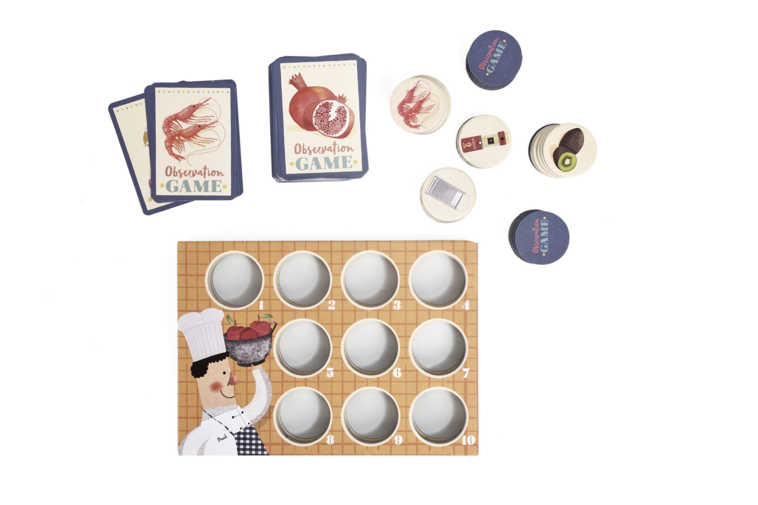 كل لاعب لديه ورقة كرتونية بموضوع الطهي مع عشرة فتحات مقطوعة. توضع المكونات (وأدوات المطبخ) على الطاولة أمام جميع اللاعبين. هل أنتم مستعدون؟ يمكنكم الآن قلب البطاقة الأولى. بسرعة، يجب على اللاعبين العثور على المكونات التي تظهر في القائمة. من سيكون الأسرع؟ أول طباخ يملأ ورقته الكرتونية بعشرة مكونات (أو أدوات مطبخ) سيكون هو الفائز.