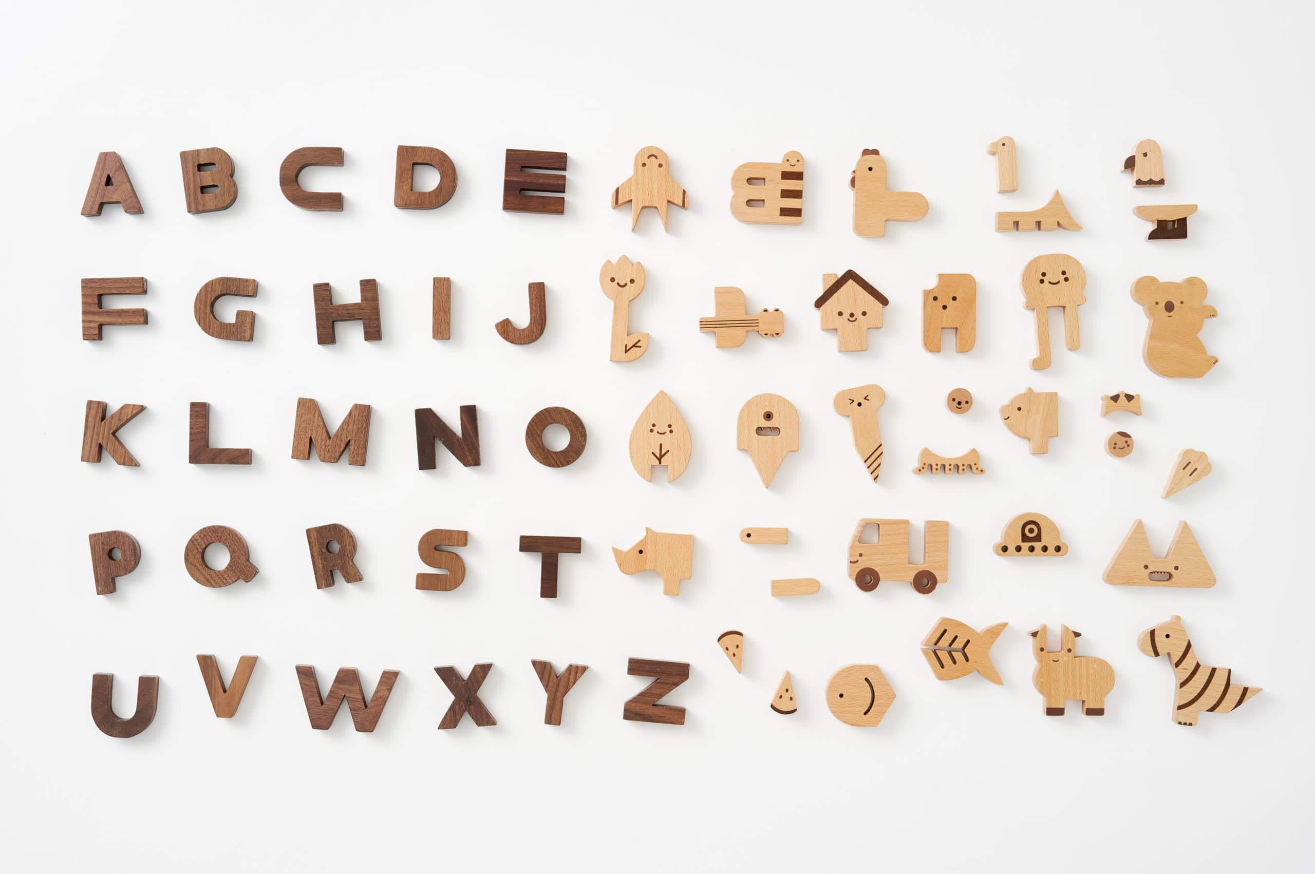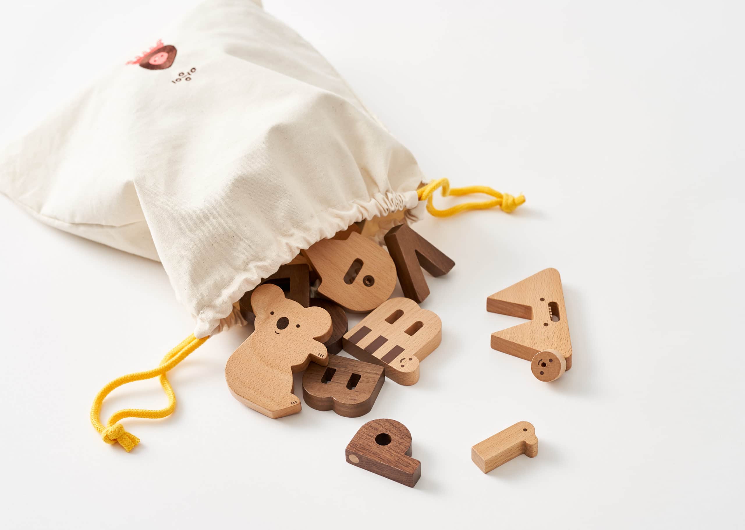 60 wooden blocks + alphabet picture book + eco bag + drawer package.