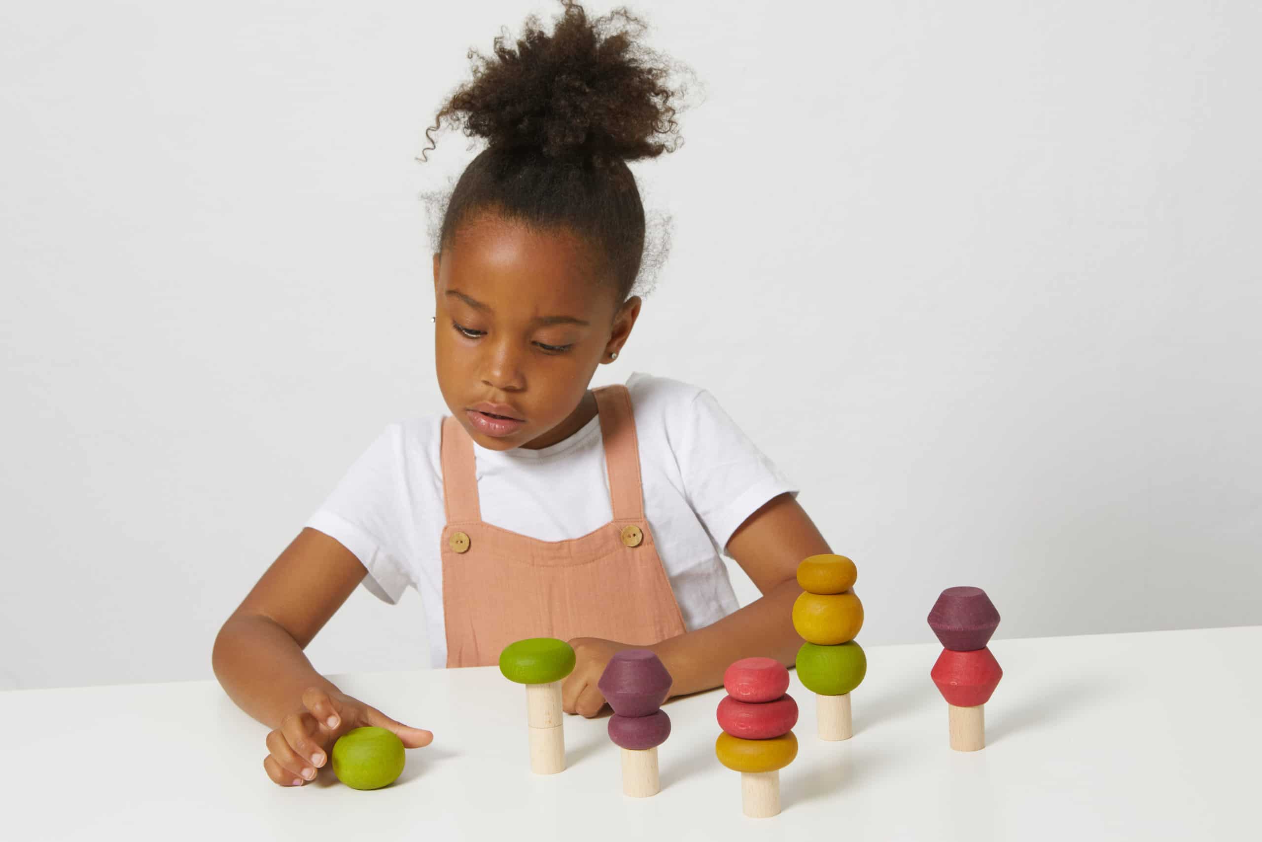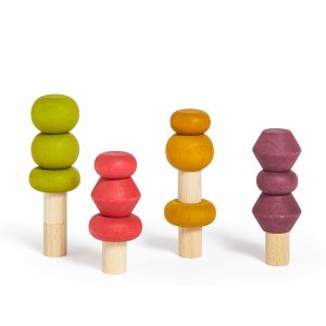 With this set of stacking trees You can build your own little forest or play around and create imaginative columns, sculptures or whatever you feel like. A great open-ended balancing toy to practise fine motor and concentration skills and a lovely addition to our Lubu Town houses and cars.