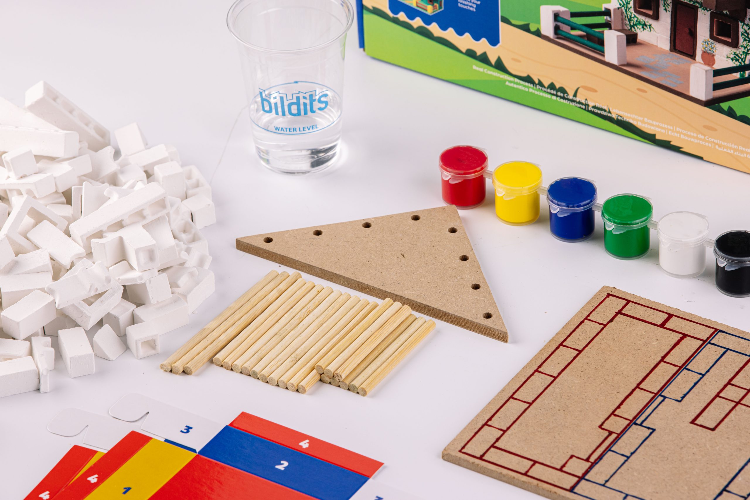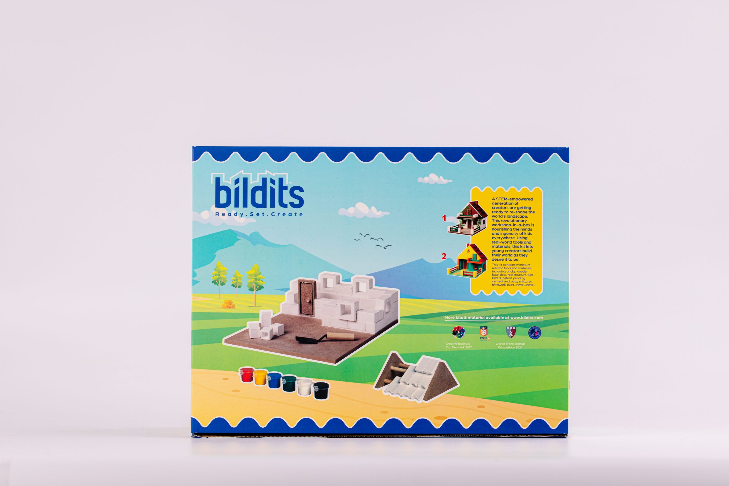 Bildits Juniors Series; an easy introduction to real-world engineering with actual construction tools and thinking. These kits are ideal for first-timers and younger creators, with diverse tasks across the construction process that’ll keep them captivated from start to finish. Learn about bricklaying, roof installation and concrete pouring, while folding origami molds and using our patented cement mix to build a home just the way you like it. Use one of our proposed design templates or build from your imagination.