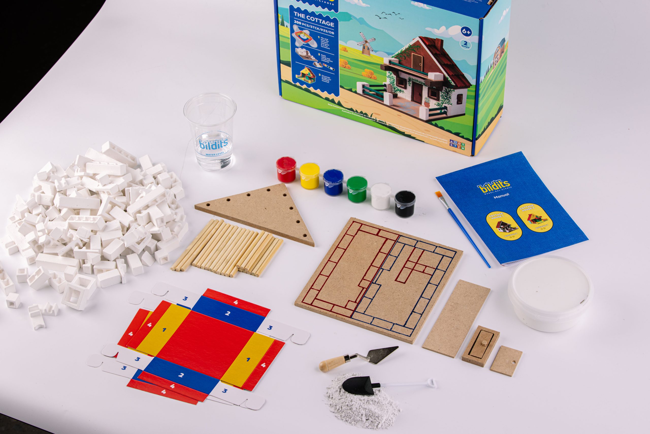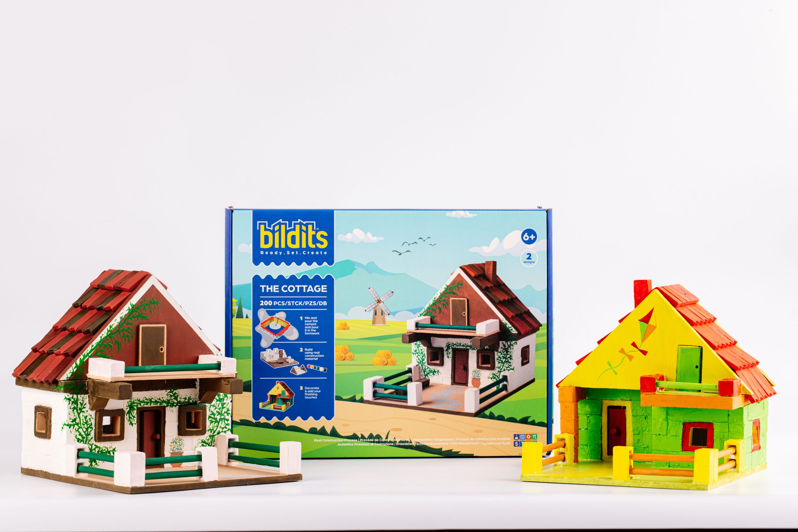 A realistic construction toy that shapes the creators of tomorrow. Build the house of your dreams today like a real engineer with Bildits. The Cottage: Cozy and full of sunlight; The Cottage kit brings nature right to you wherever you are.Choose the spacious garden with balcony design or the party-ready patio; or dream up your own design using the bricks, roof and real materials in this kit. You’ll also learn problem-solving skills, patience and focus while using the real construction process to build your charming cottage.