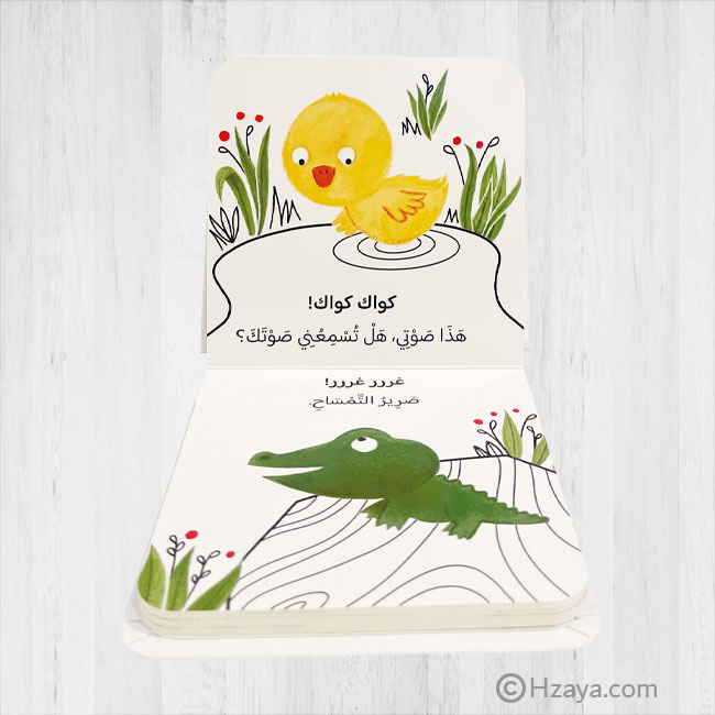 Join the little duck as she meets baby animals and learns about their unique sounds. Kids will love moving this book.
