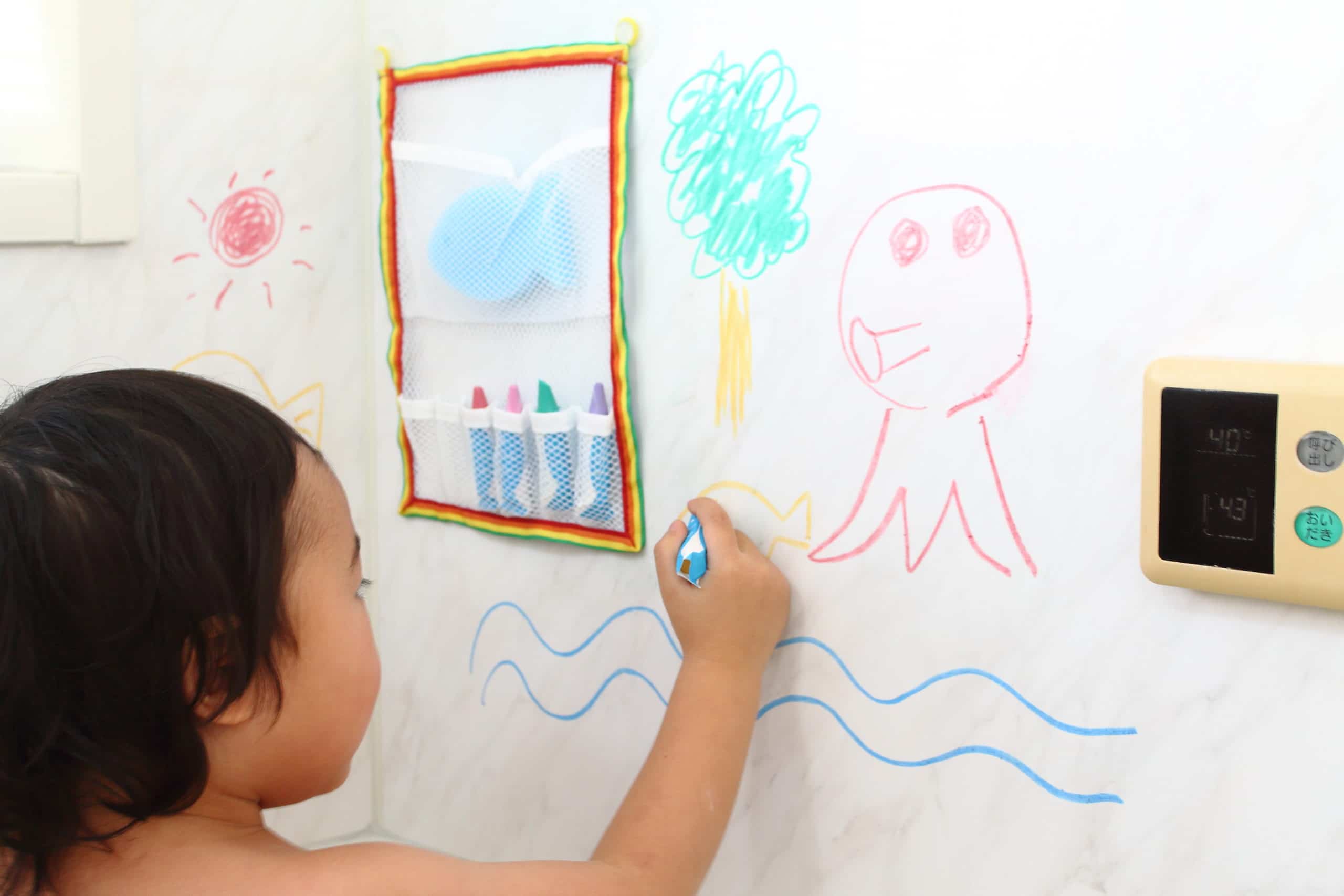 The Kitpas Crayons for Bath are specially formulated crayons designed to be used on wet surfaces such as bathtubs. Not only are they hexagonal in shape for slippery hands but the crayons can also float in water for safekeeping and the paper that encases the crayons is waterproof for extra durability.
