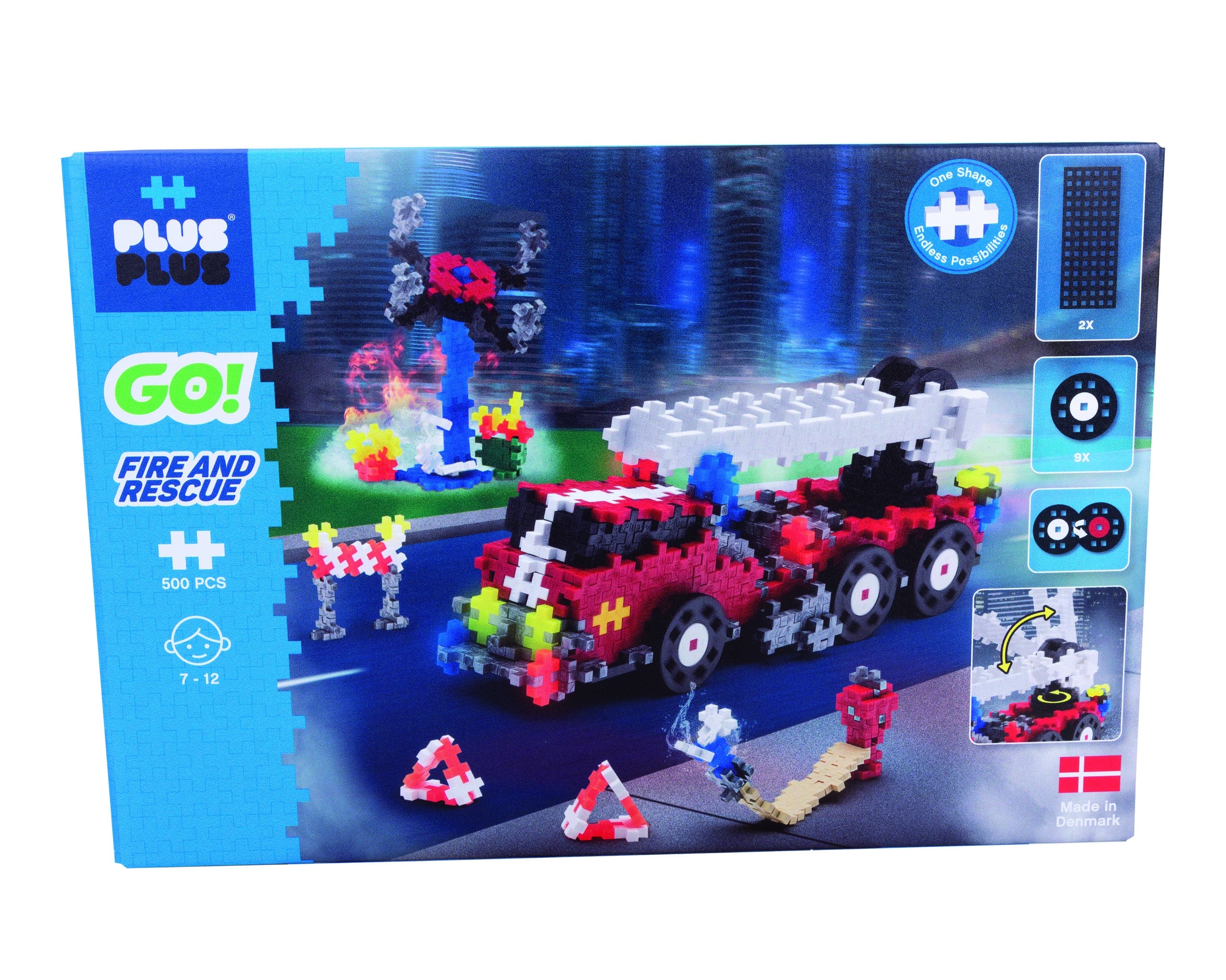 Comes with a cool Fire truck with 9 wheels and a moving ladder as well as a fire fighter drone. Alternatively you can build fire cars and accessories. Set comes with 500 pieces, 9 reversible wheels and 2 baseplates chassis. A Guide Book gives step-by step instructions to build the car.