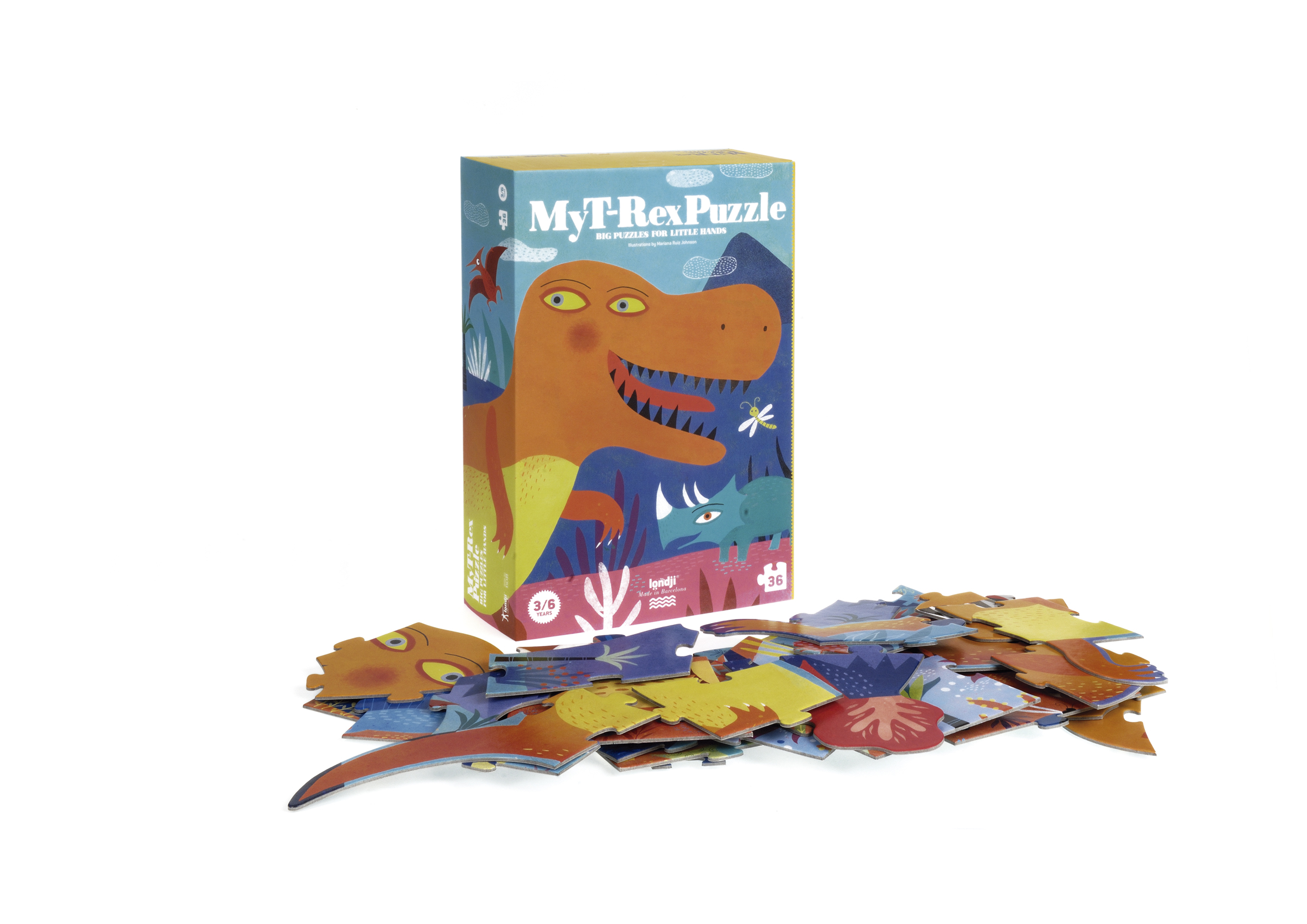 A 36-piece shape puzzle starring a T-Rex with which we will explore the time of the dinosaurs. For girls and boys from 3 to 6 years old.